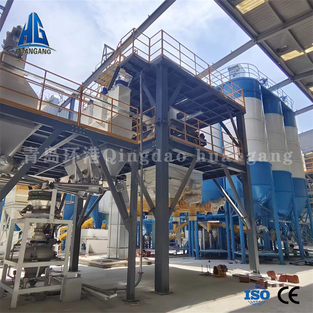 砂漿制造設備可配合干式制砂系統或者濕砂烘干系統,生產出優質高標準的干粉砂漿和特種砂漿。主樓采用塔式結構,將粉料倉安裝在主樓頂部,外加劑系統采用獨立平臺計量泵送。骨料自上而下經過計量層、混合機層、成品倉、控制室、散裝機、包裝機。